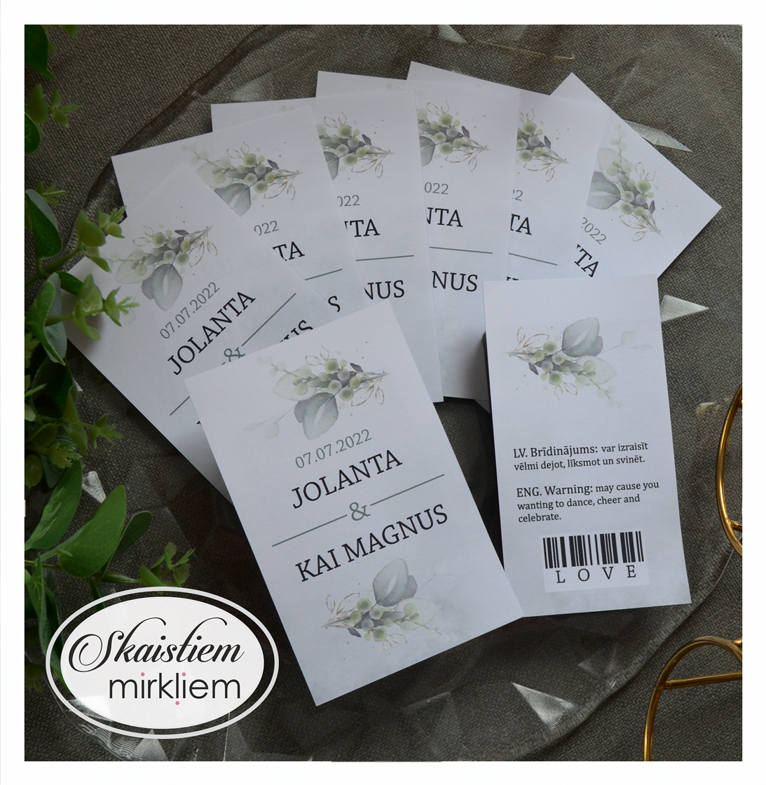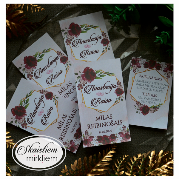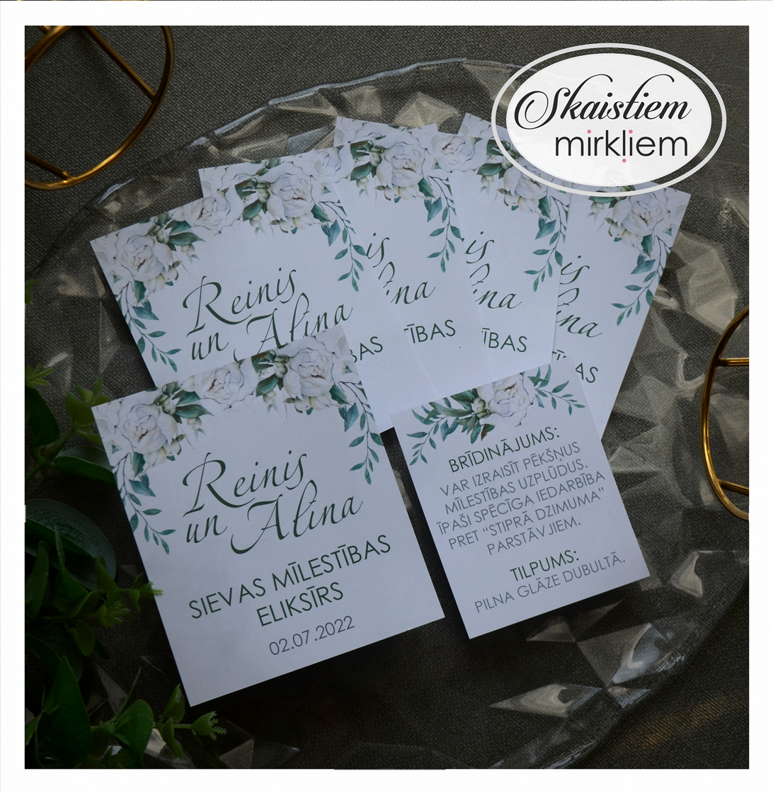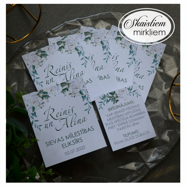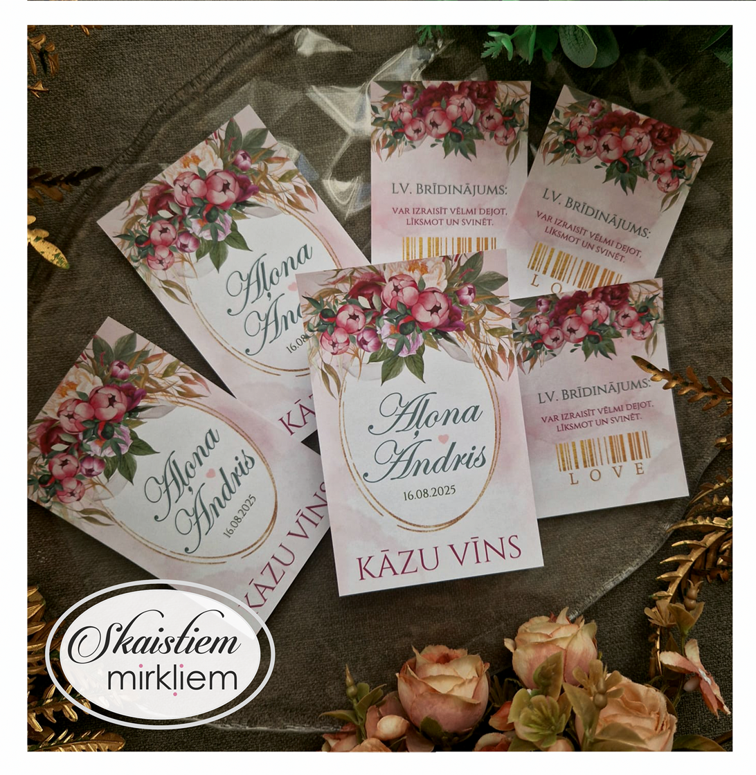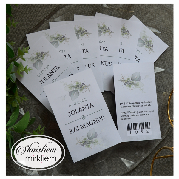 Radiet īpašu kāzu noskaņu ar personalizētām dzērienu etiķetēm! Tas būs pārdomāts akcents, kas padarīs Jūsu svētku noformējumu vienojošu.