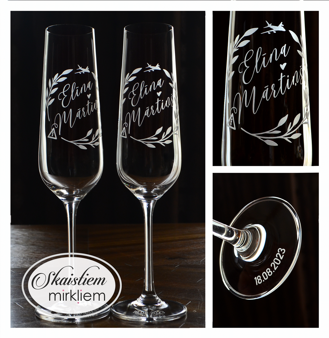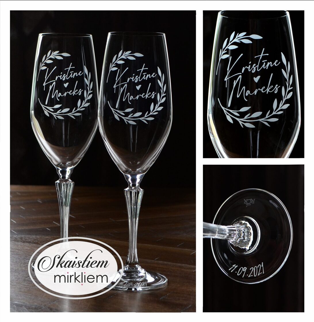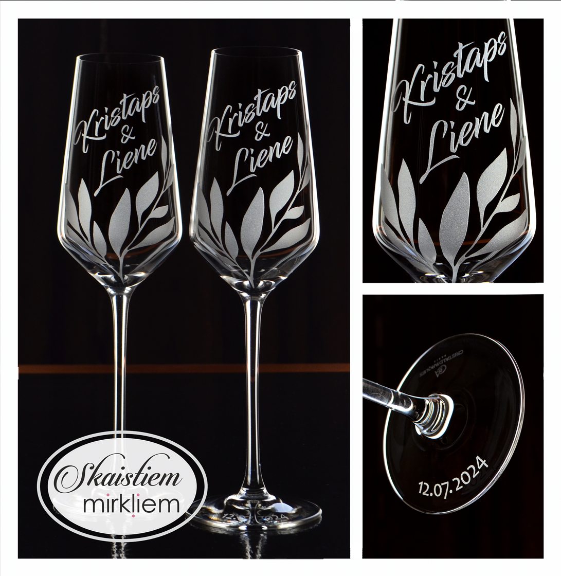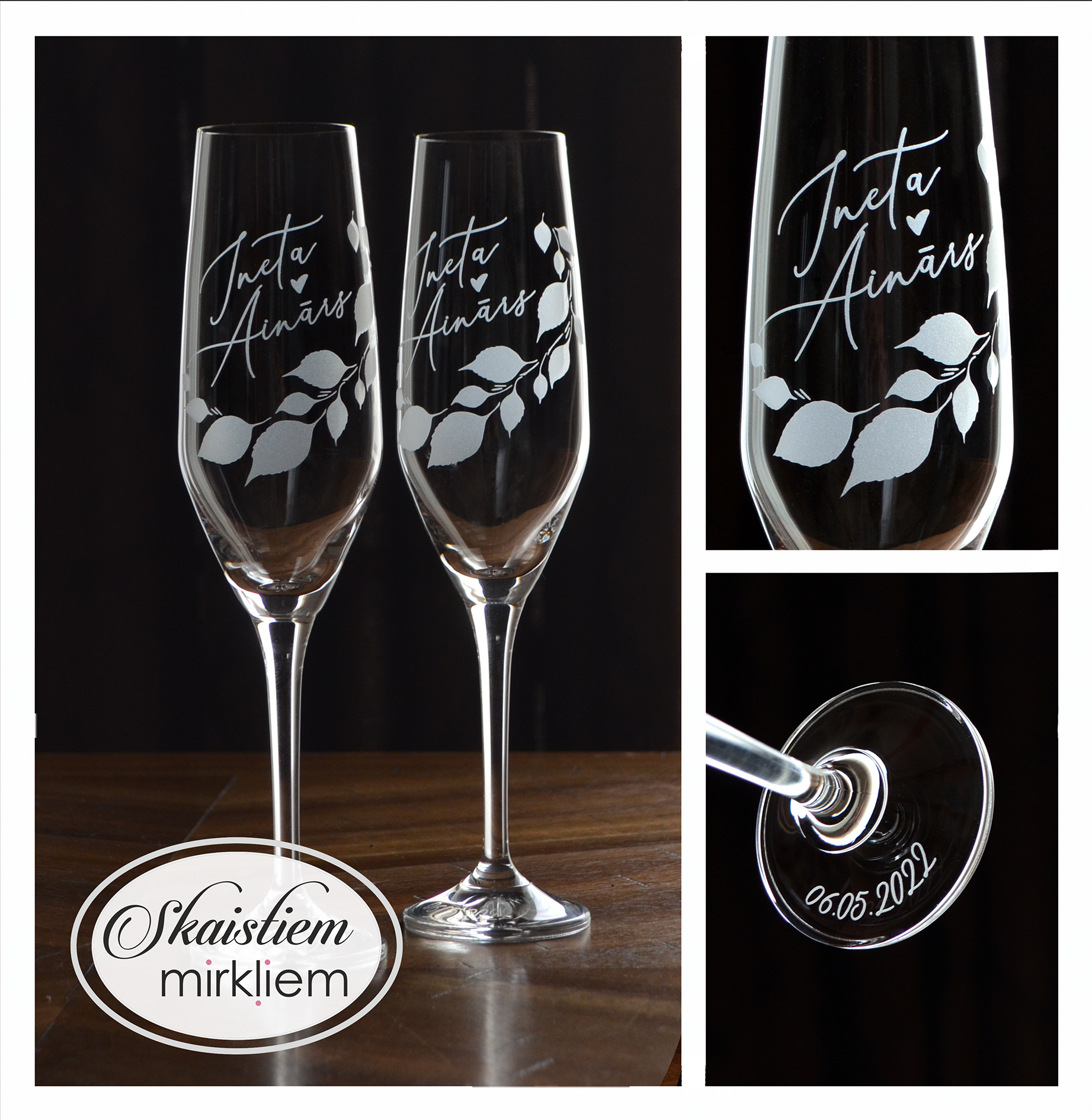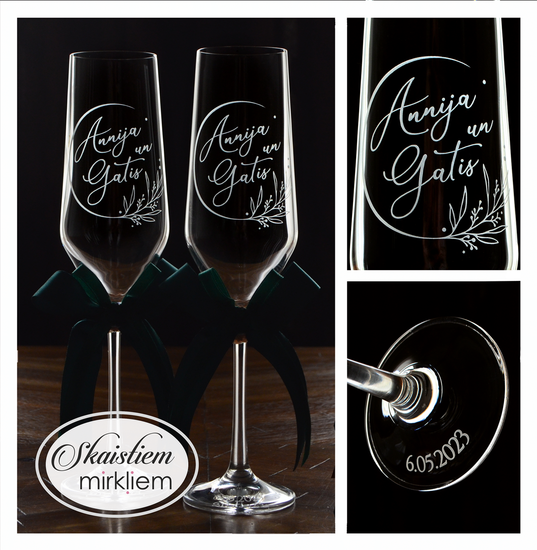 Kāzu šampanieša glāzes ar gravējumu Samanta & Mārtiņš - Skaistiem mirkļiemMūsu gravētās glāzes nav tikai kāzu dienas aksesuārs – tās ir stāsts par mīlestību, pateicību un kopā būšanu.