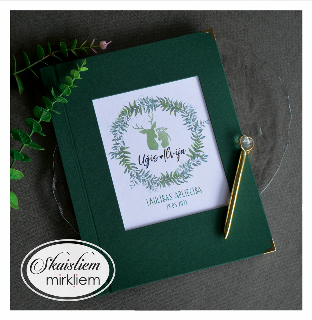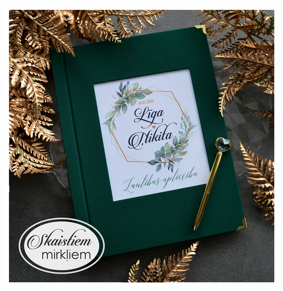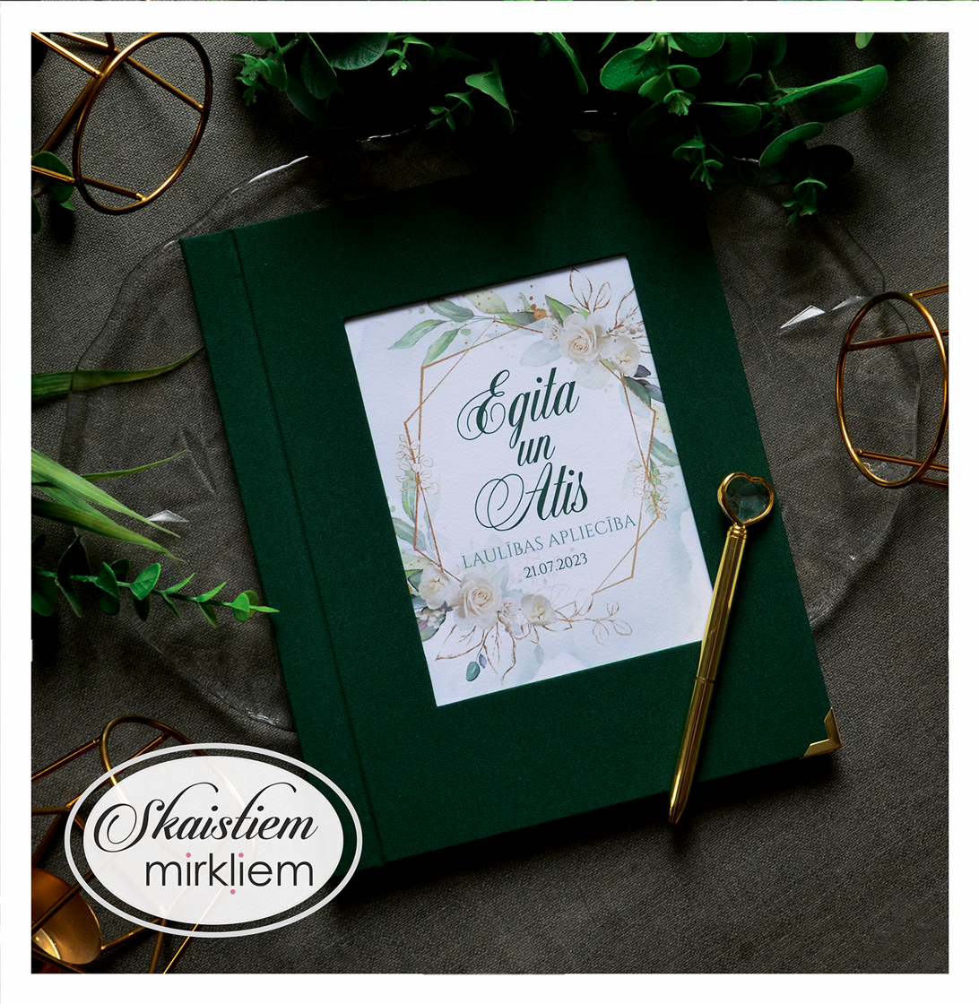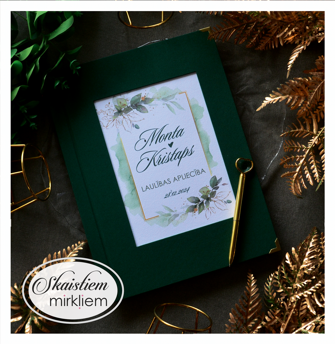 Personalizācija: Pievienojiet vārdus, uzvārdu, kāzu datumu vai īpašu citātu vāku iekšpusē.