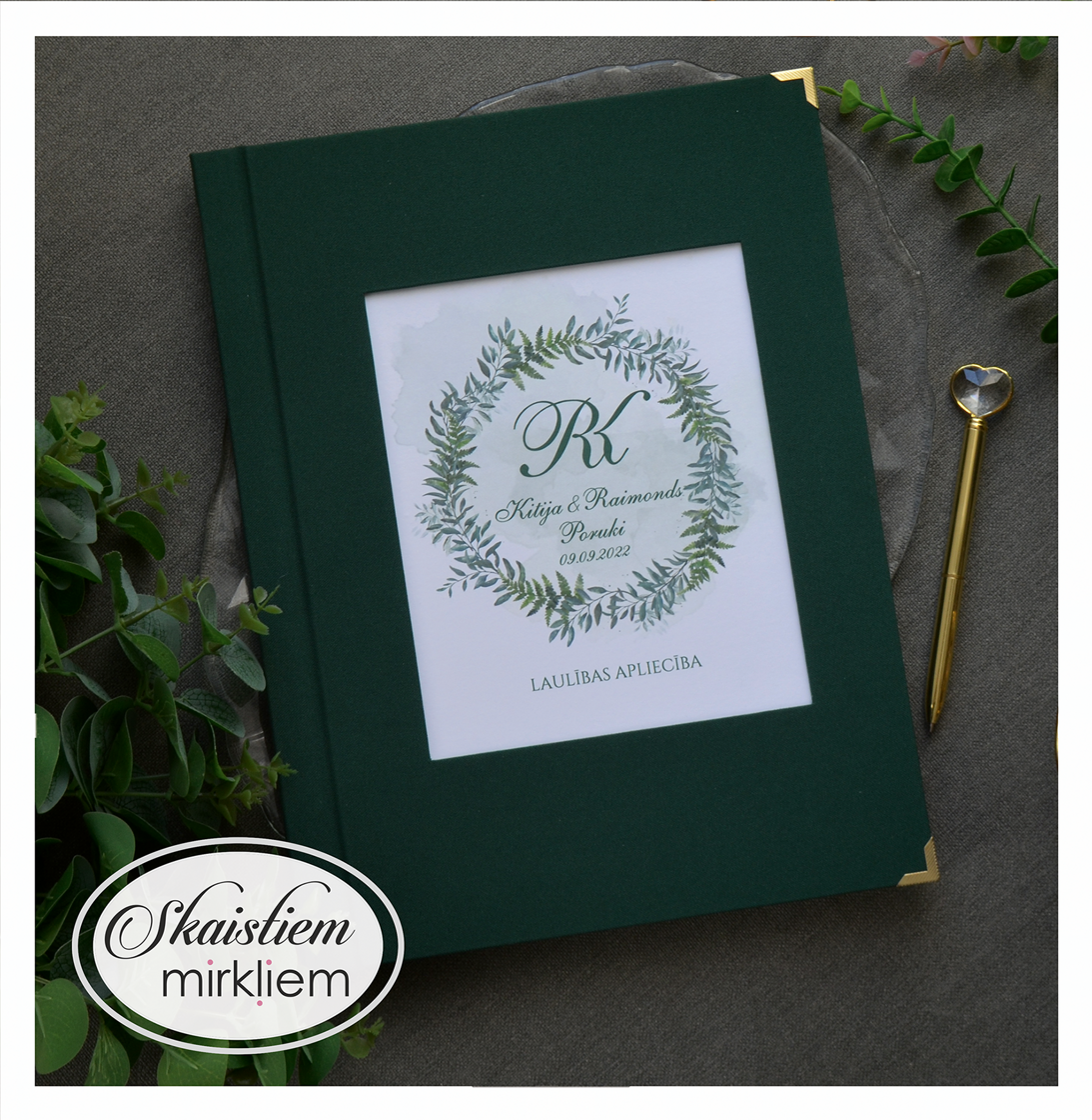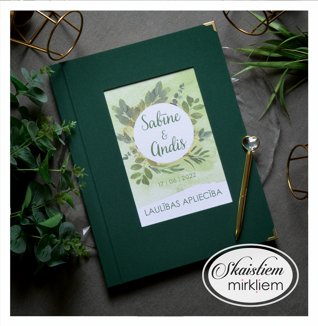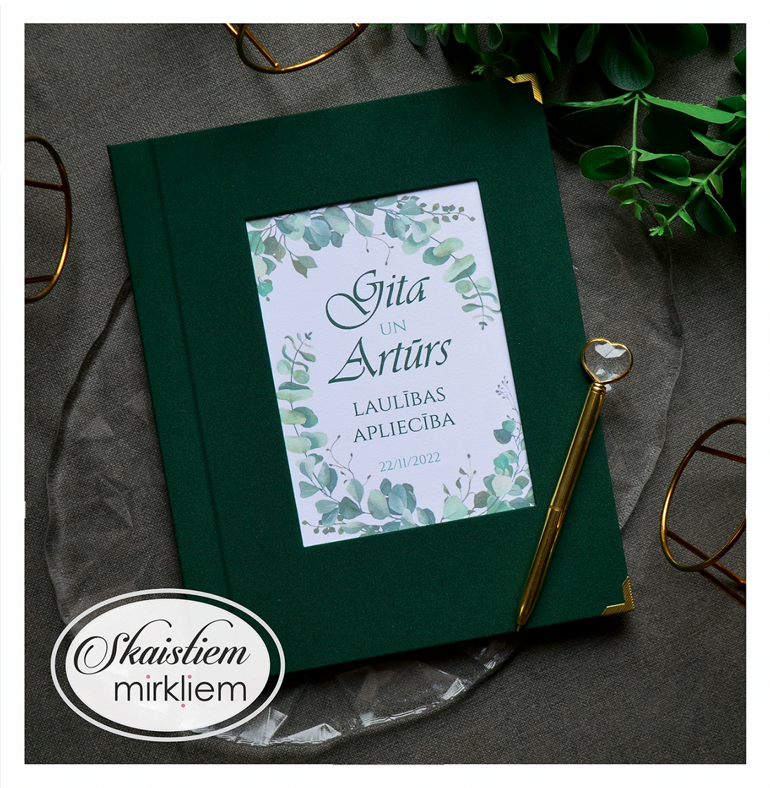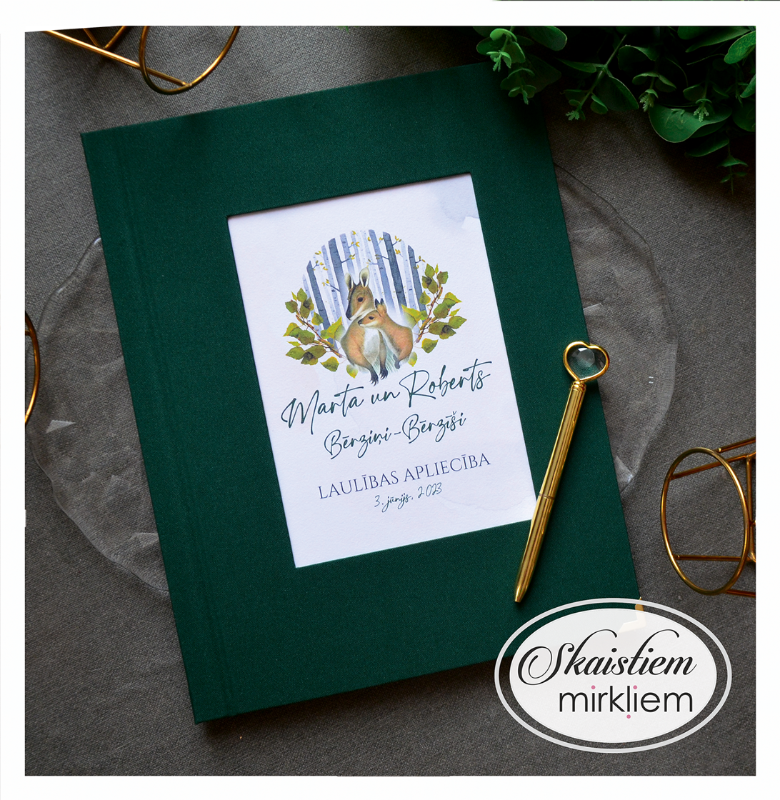 Personalizācija: Pievienojiet vārdus, uzvārdu, kāzu datumu vai īpašu citātu vāku iekšpusē.