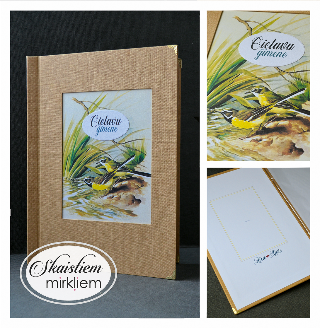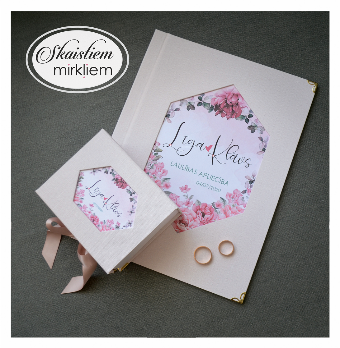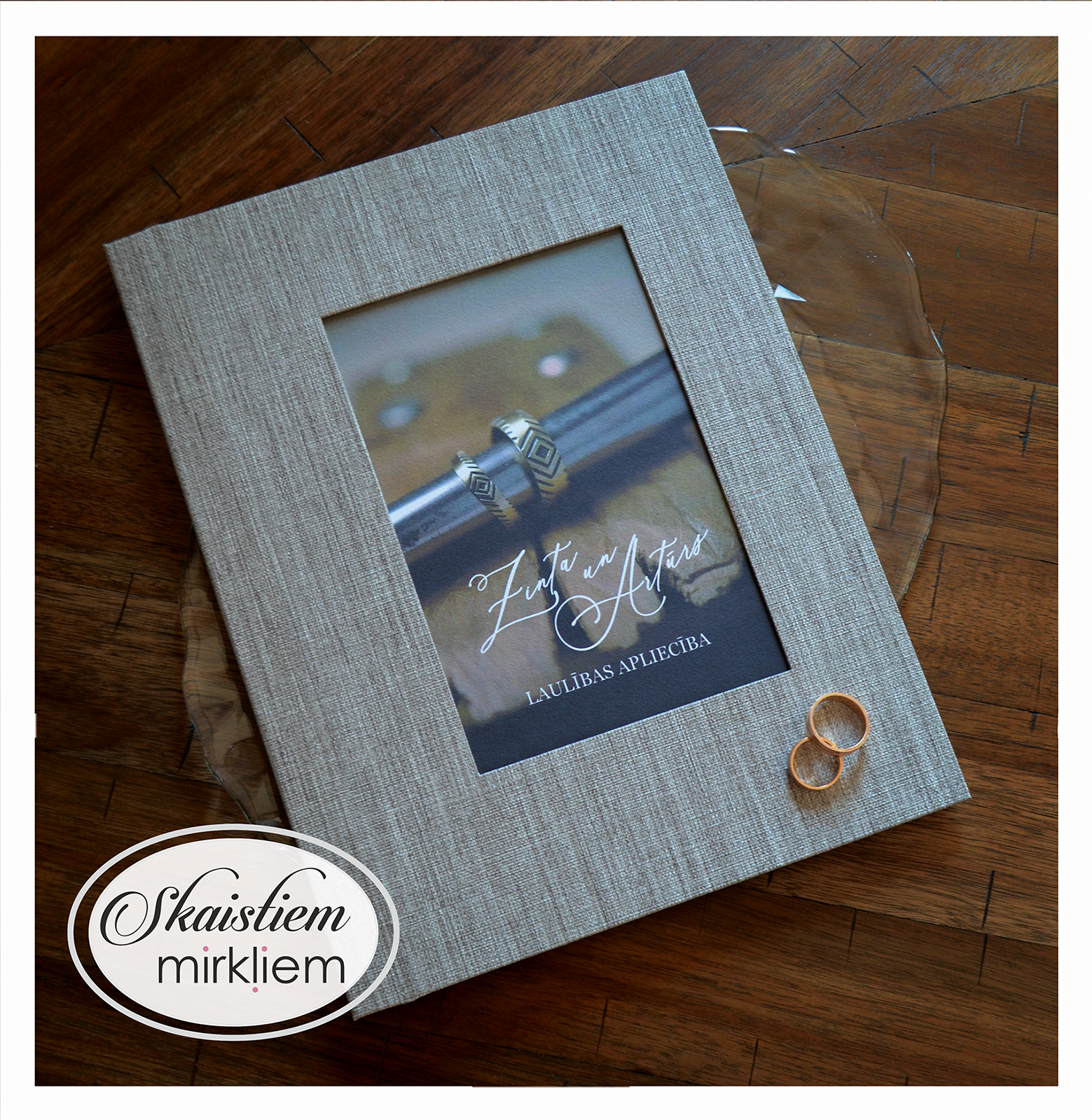 Laulības apliecību vāki ir rūpīgs roku darbs.  Tie ir izgatavoti stingros vākos, kuri apvilkti ar izvēlēto materiālu.