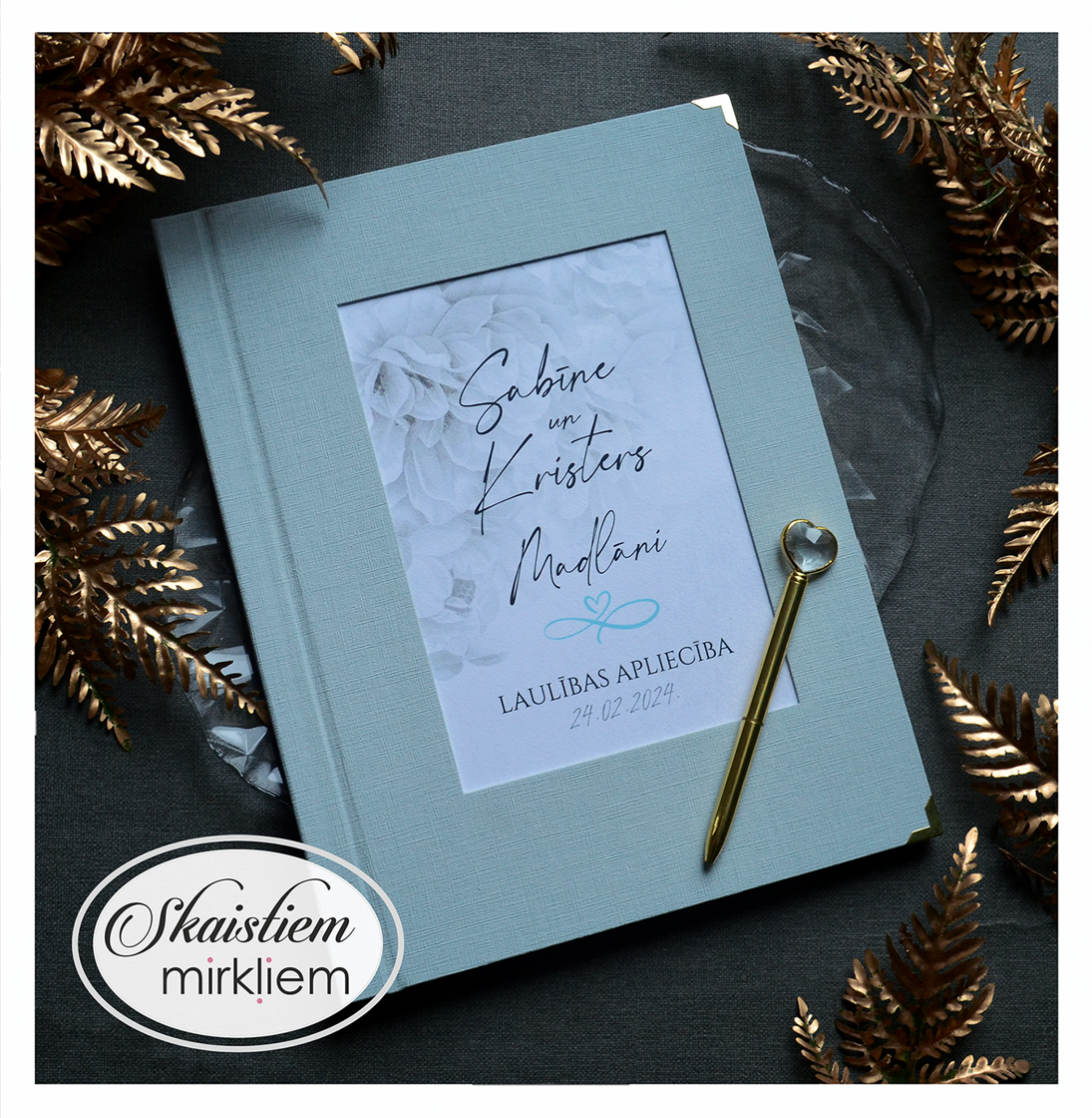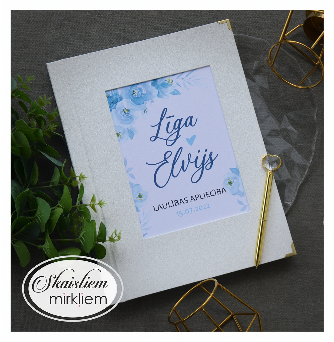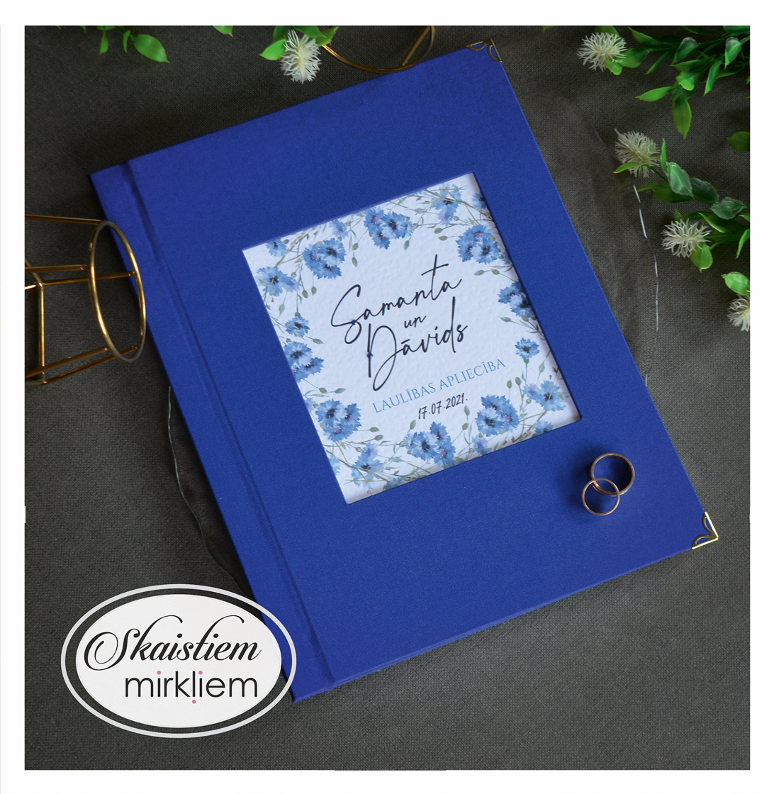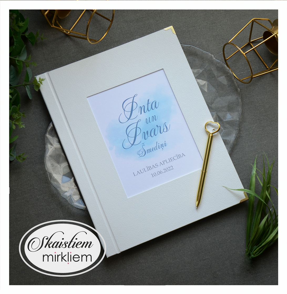 Personalizācija: Pievienojiet vārdus, uzvārdu, kāzu datumu vai īpašu citātu vāku iekšpusē.