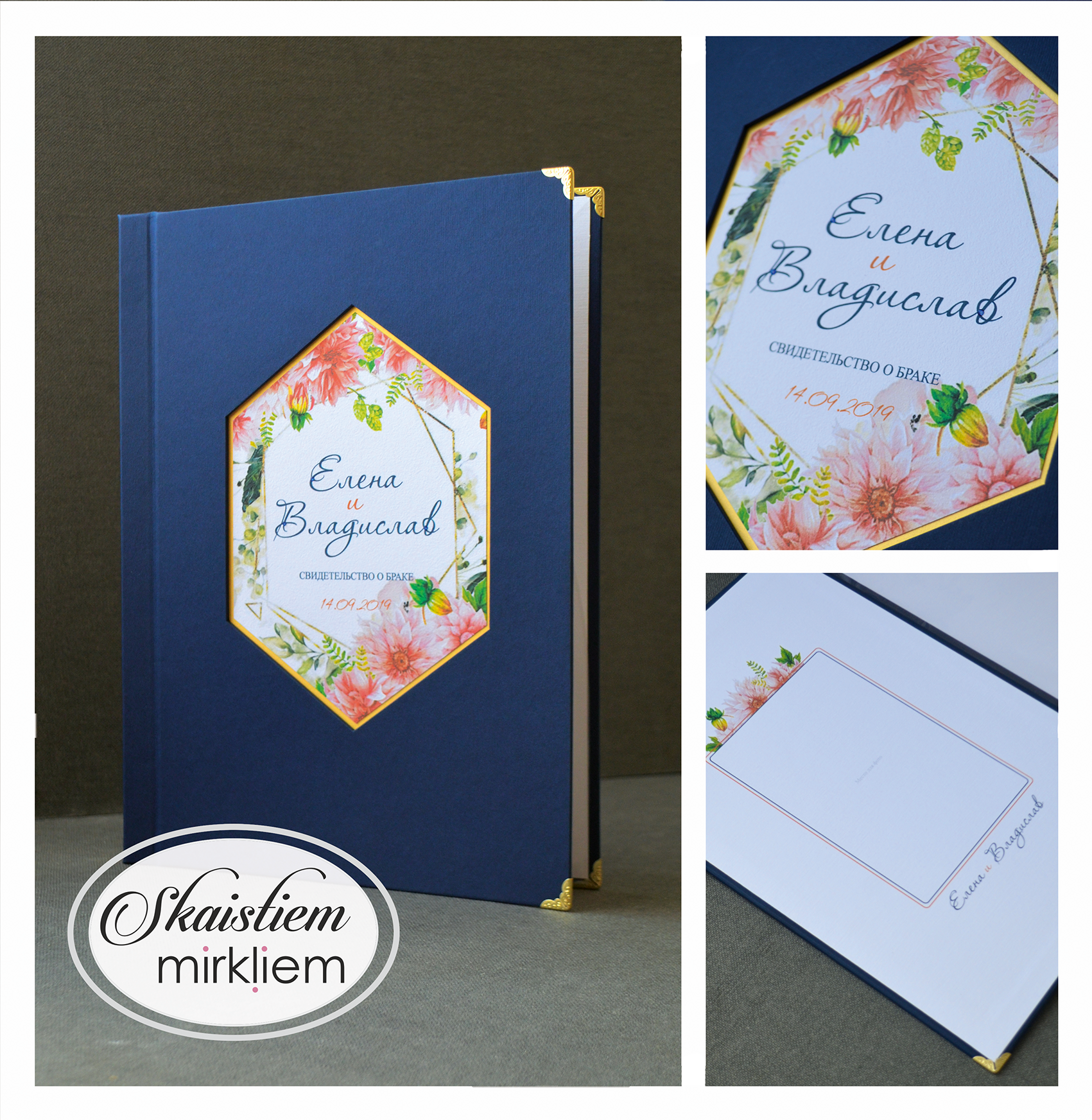 Laulības apliecību vāki ir rūpīgs roku darbs. Tie ir izgatavoti stingros vākos, kuri apvilkti ar izvēlēto materiālu.
