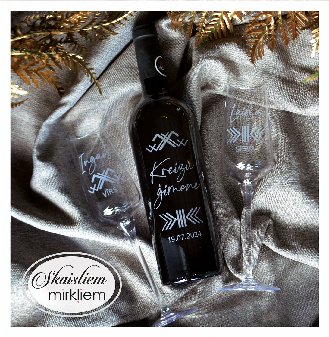 Dzēriena izvēle: Gravēšanu iespējams veikt uz lielākās daļas stikla pudeļu. Lūdzam iepriekš saskaņot dzēriena veidu.