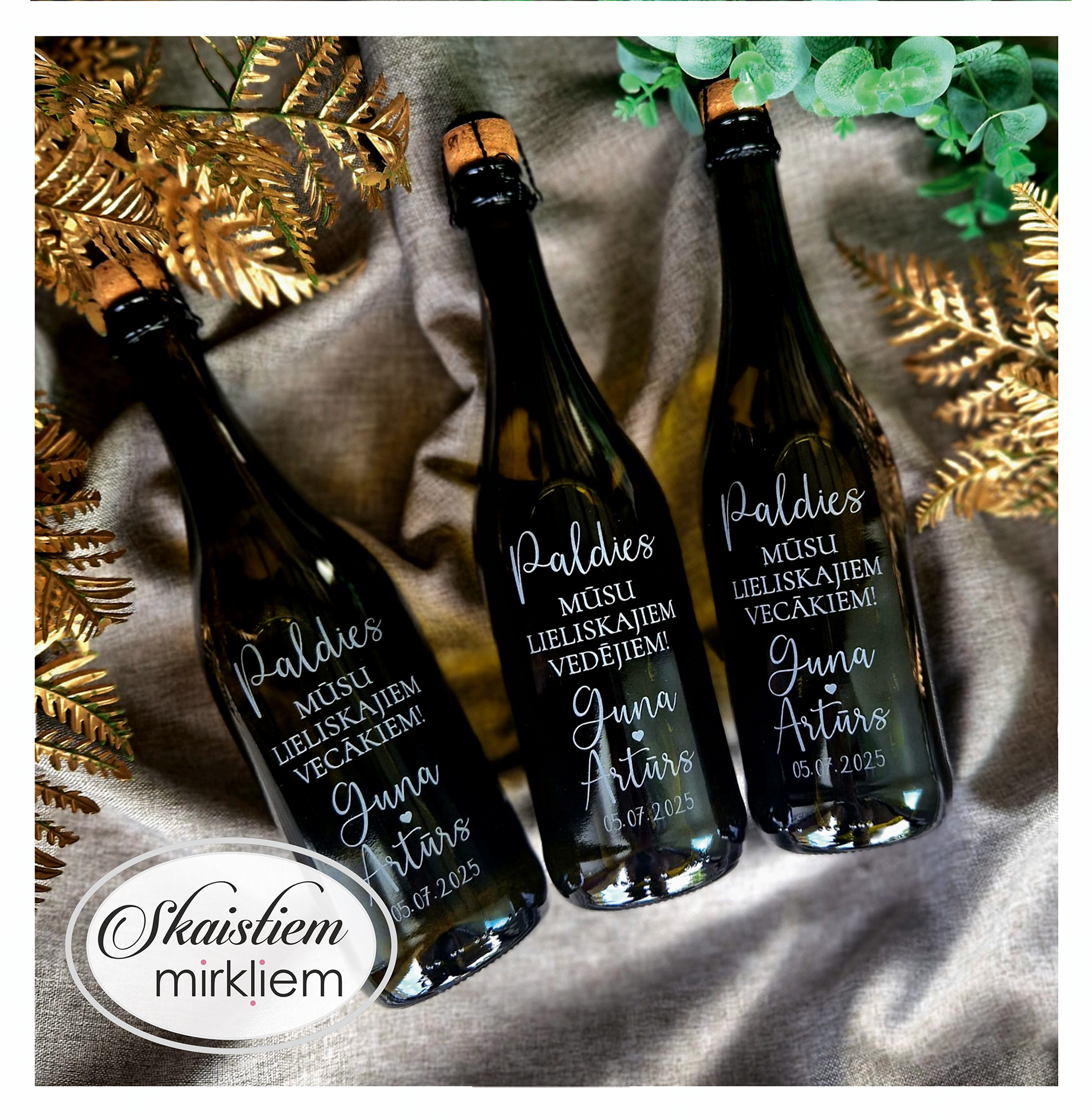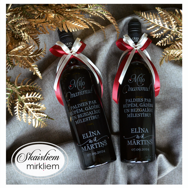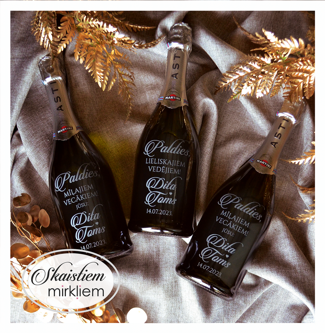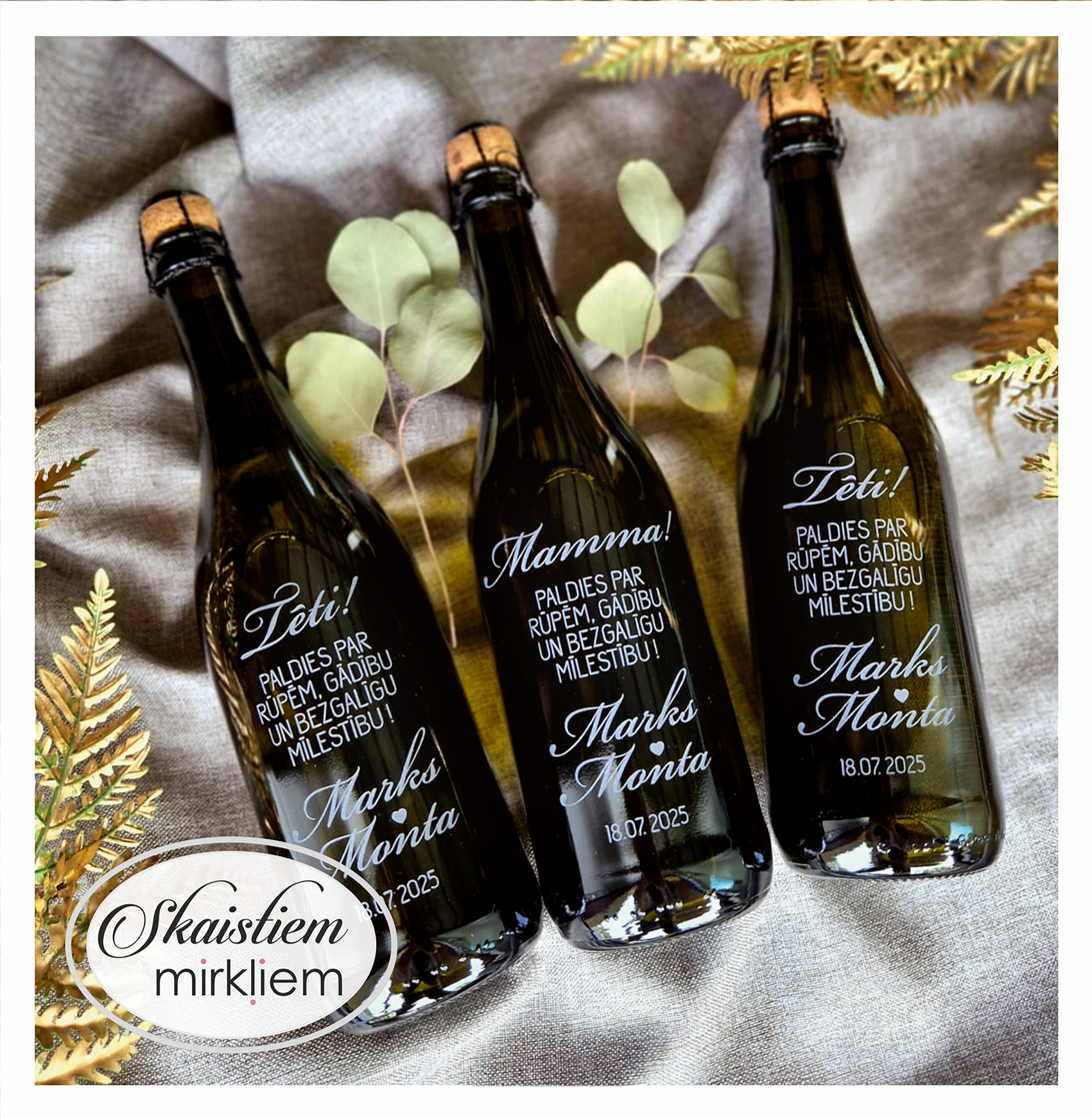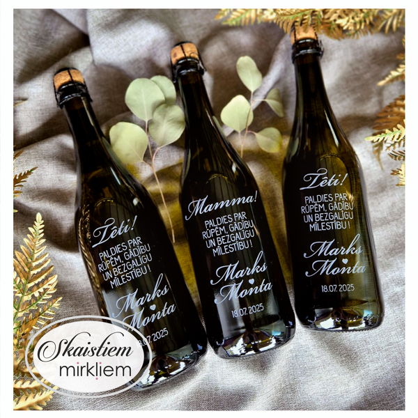 Dzēriena izvēle: Gravēšanu iespējams veikt uz lielākās daļas stikla pudeļu. Lūdzam iepriekš saskaņot dzēriena veidu.