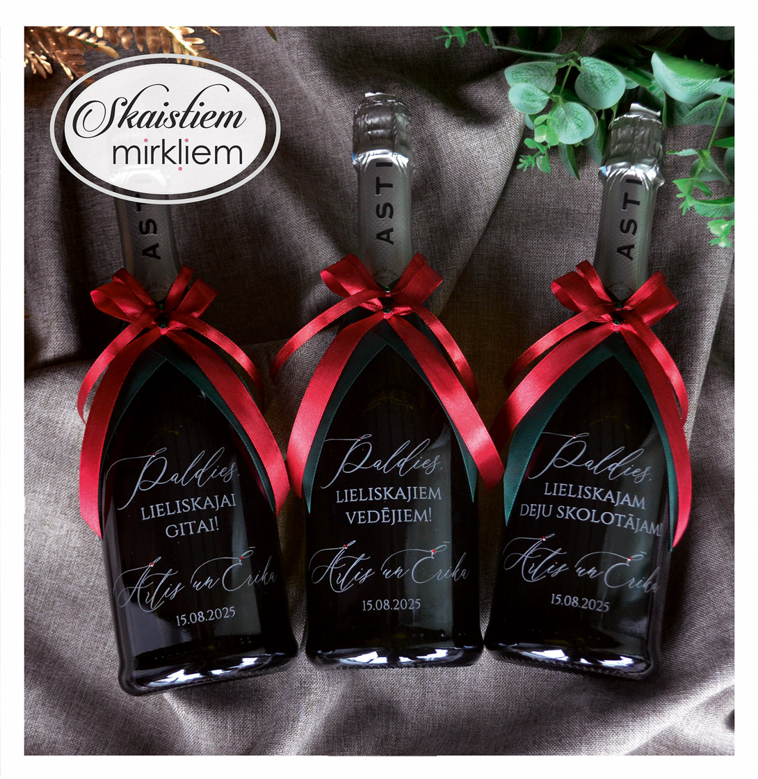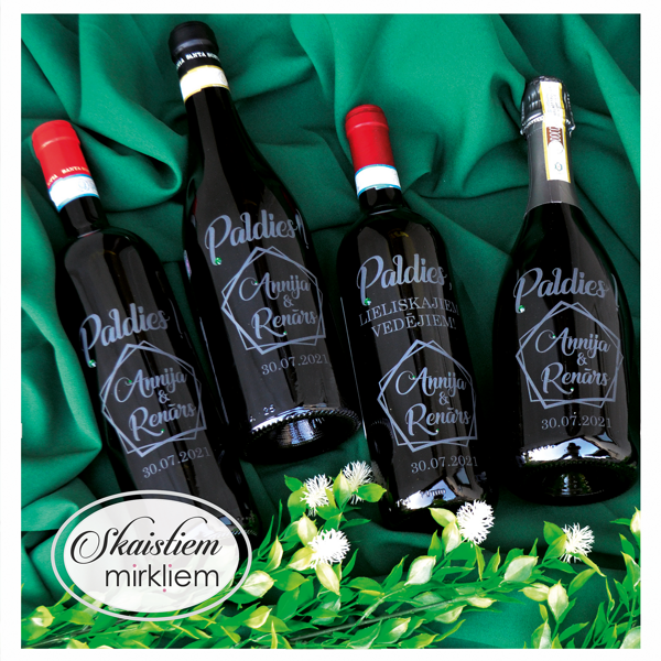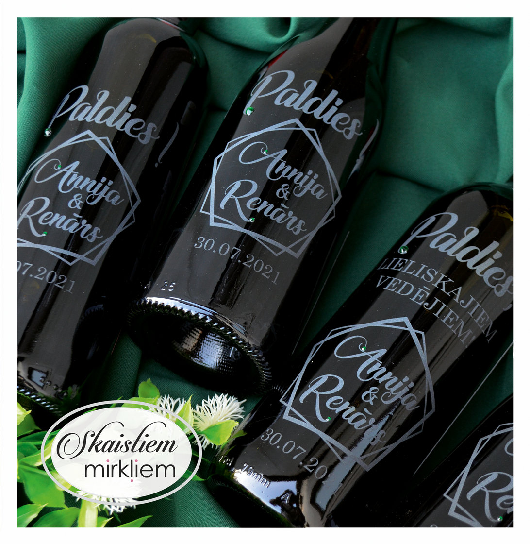 Dzēriena izvēle: Gravēšanu iespējams veikt uz lielākās daļas stikla pudeļu. Lūdzam iepriekš saskaņot dzēriena veidu.