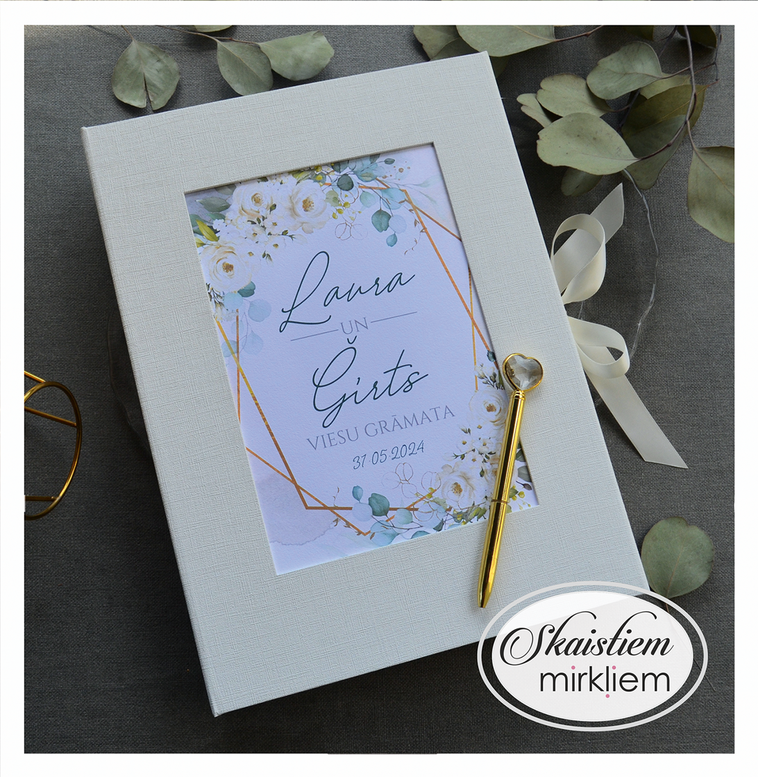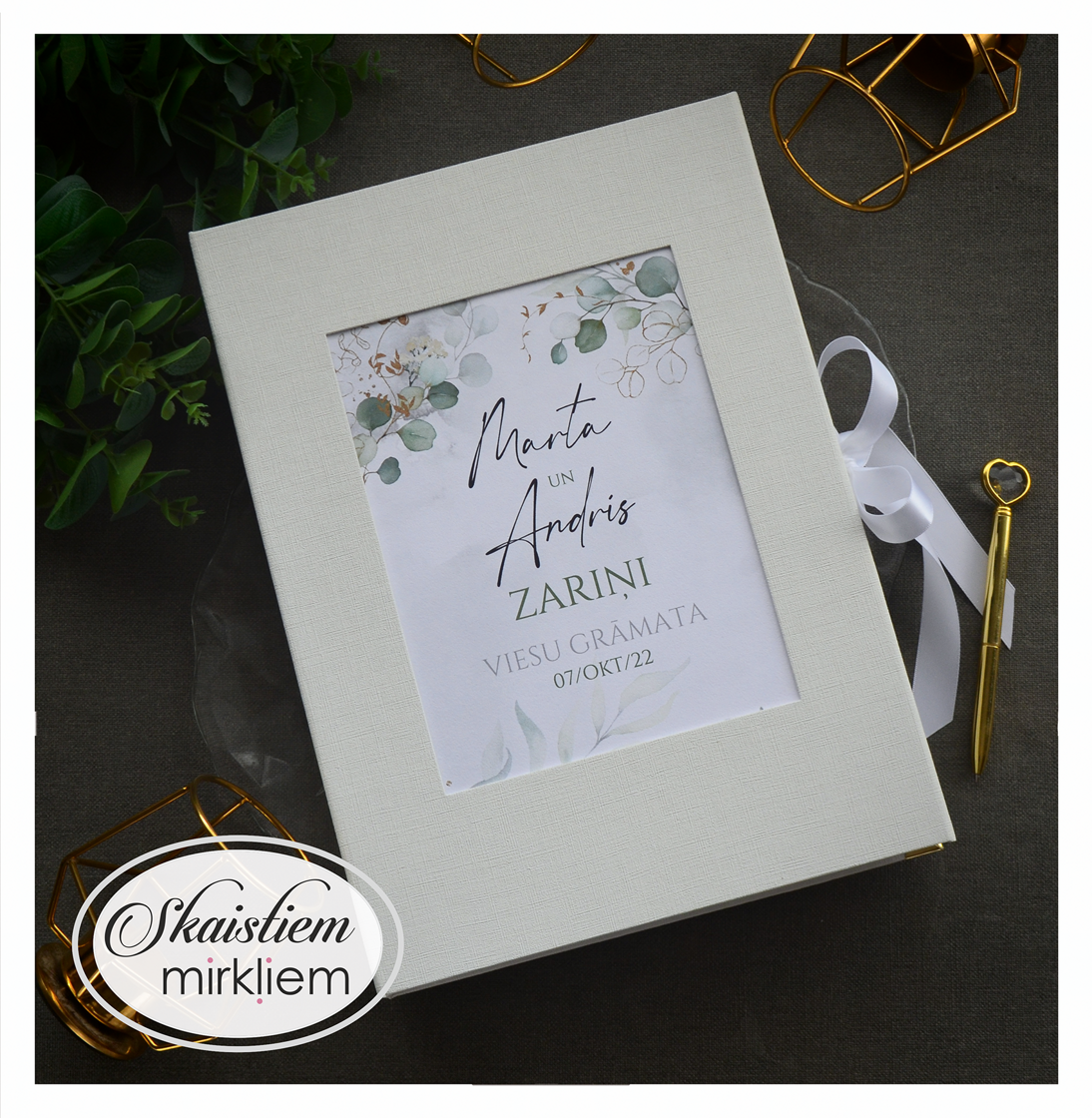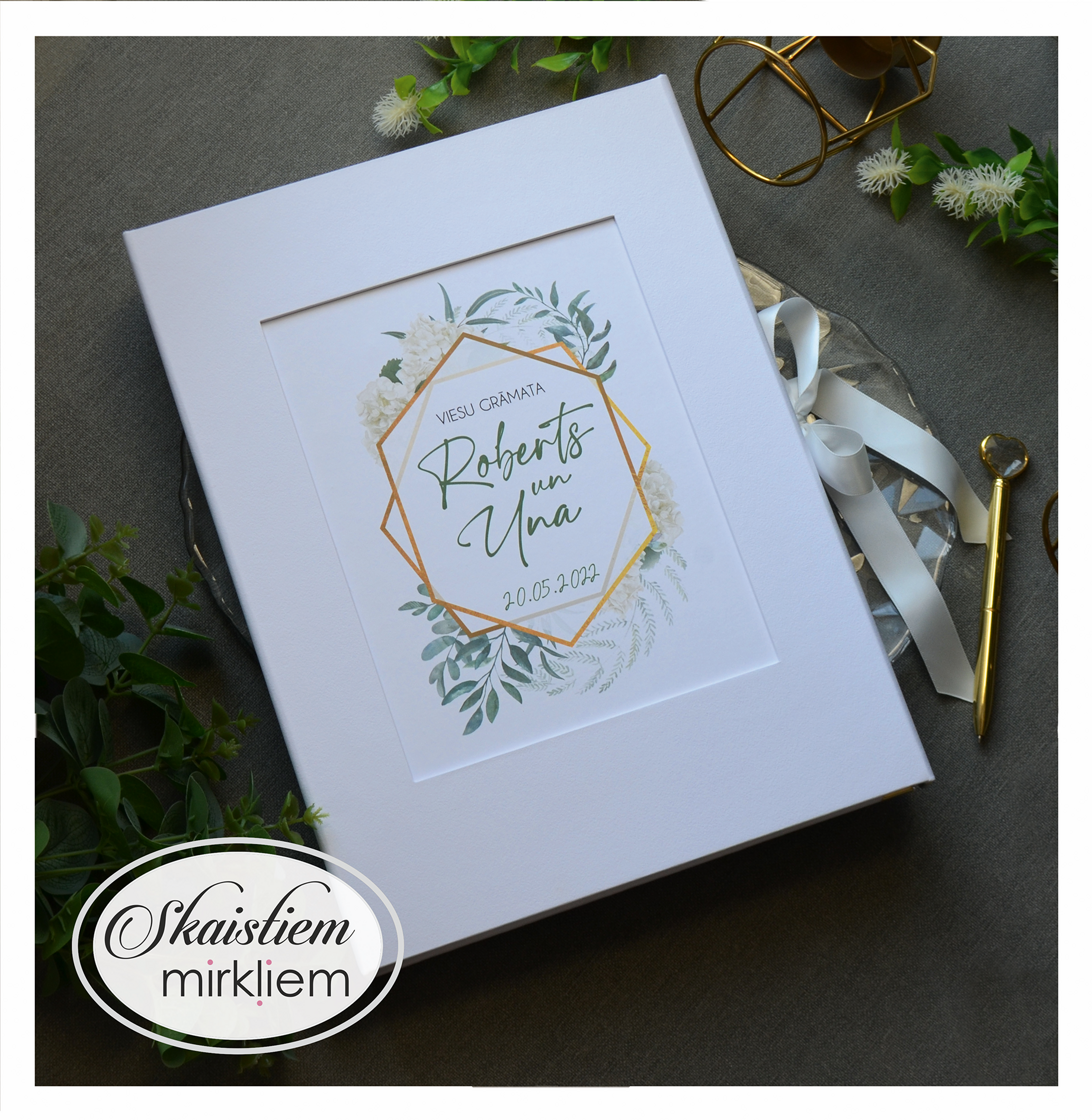 Mūsu viesu grāmatas ar baltiem vākiem ir nevainojamas elegances un klasisku kāzu tradīciju simbols. Piedāvājumā ir dažādu tekstūru risinājumi — no gluda un maiga materiāla līdz izteiksmīgam dekoratīvajam audumam ar lina vai strukturētu virsmu. Baltā krāsa kalpo kā tīrs audekls, uz kura lieliski izceļas jebkurš dizains: romantiski ziedu motīvi, smalki eikalipta zari vai grezna zelta folijas druka.