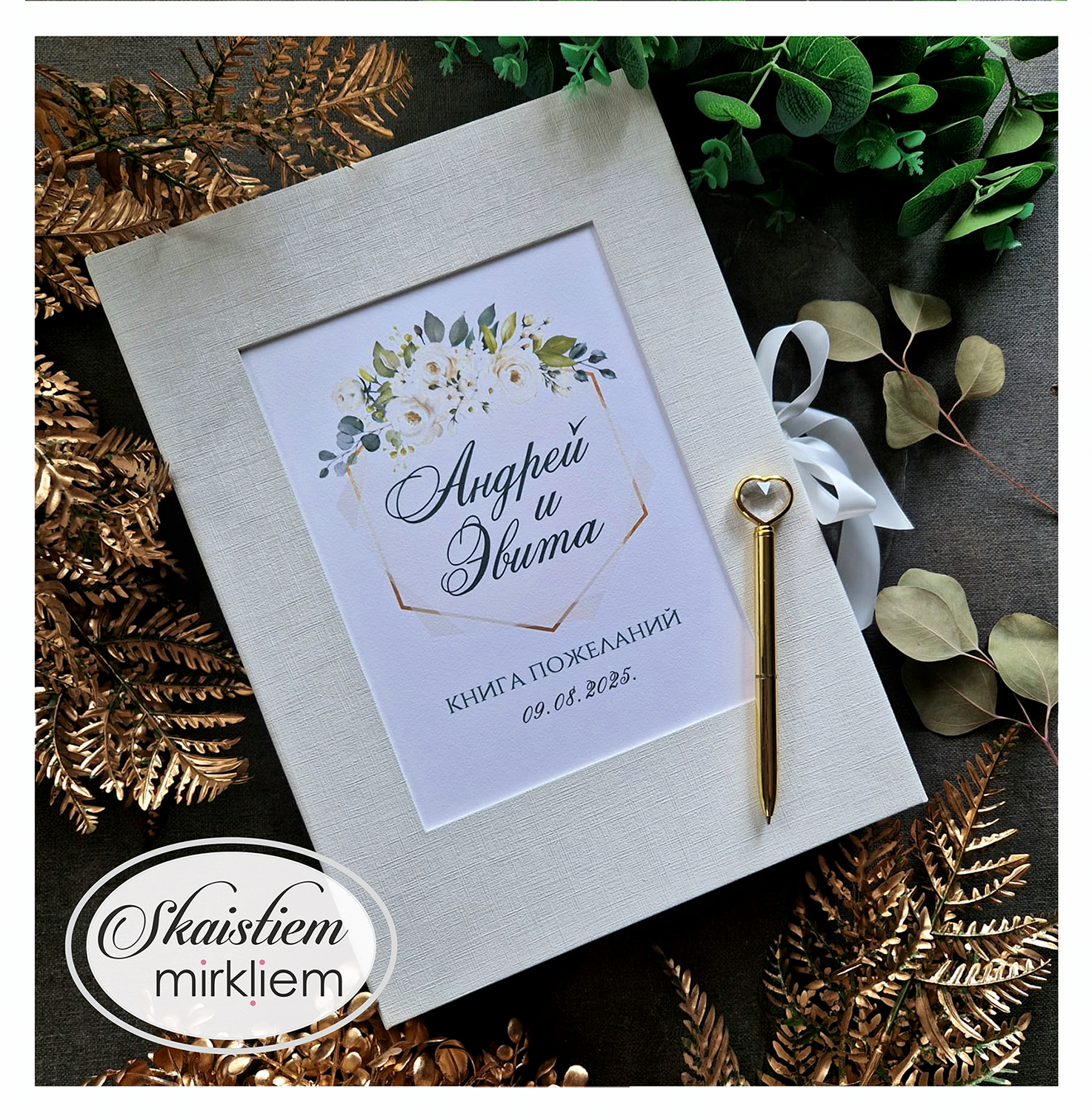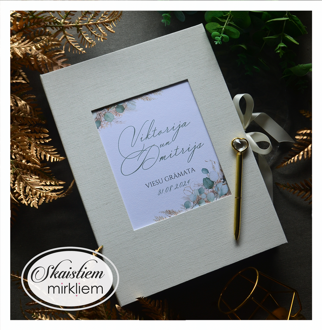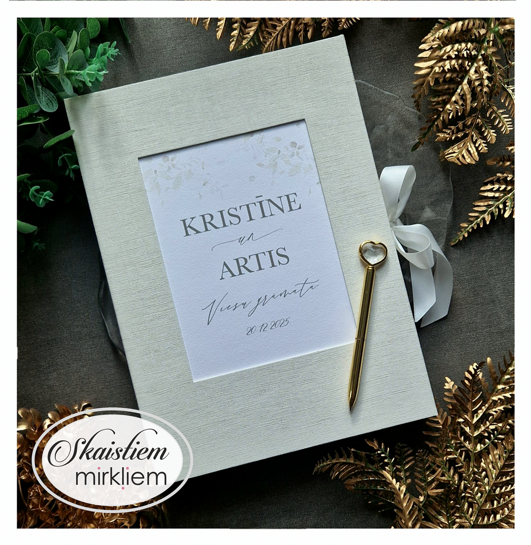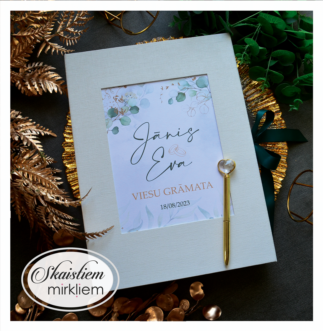 Mūsu viesu grāmatas ar baltiem vākiem ir nevainojamas elegances un klasisku kāzu tradīciju simbols. Piedāvājumā ir dažādu tekstūru risinājumi — no gluda un maiga materiāla līdz izteiksmīgam dekoratīvajam audumam ar lina vai strukturētu virsmu. Baltā krāsa kalpo kā tīrs audekls, uz kura lieliski izceļas jebkurš dizains: romantiski ziedu motīvi, smalki eikalipta zari vai grezna zelta folijas druka.