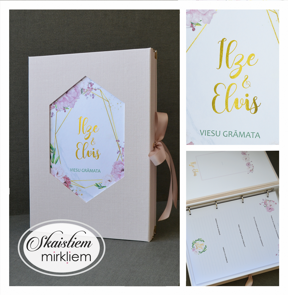 Katra grāmata ir aprīkota ar anketu veida lapām, kurās viesi var ērti ierakstīt savus novēlējumus, ieteikumus jaunajam pārim un ielīmēt momentfoto. Šāds formāts pārvērš viesu grāmatu par interaktīvu atmiņu albumu, kas priecēs gadiem ilgi.